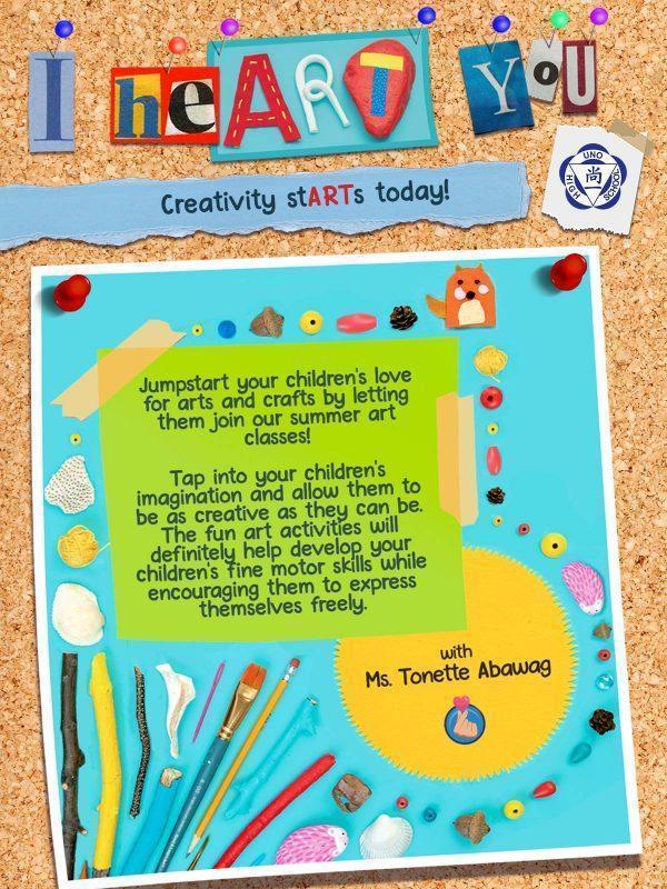 Jumpstart your children’s love for arts and crafts by letting them join our summer art classes! Tap into your children’s imagination and allow them to be as created as they can be. The fun art activities will definitely help develop your children’s fine motor skills while encouraging them to express themselves freely.