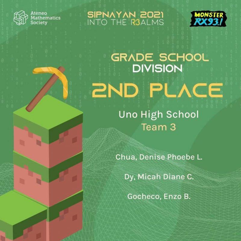 Congratulations to our mathletes Denise Phoebe L. Chua, Micah Diane C. Dy, and Enzo B. Gocheco for winning second place in the grade school division of SIpnayan 2021! Congratulations and thank you to Coach Kurt Byron Ang, who trained the mathletes! Sipnayan is one of the country’s largest interschool mathematics competitions for grade school, high […]