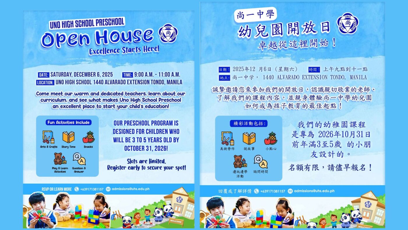 Looking for the best start for your child? 您正在為孩子尋找最好的起點嗎? At Uno High School, we nurture curiosity, confidence, and character in a caring environment where every learner is valued. 在尚一中學,我們在充滿關愛的環境中,培養學生的好奇心、自信心與優良品格,讓每個學習的都受到重視。 We’re now accepting applicants for Preschool (Prep 1–3) and new students from Grades 1–11 for SY 2026–2027! 我們正接受幼稚園(小小班至大班)入學申請,並歡迎2026-2027 學年度新生入學。 At Uno, excellence starts early — and […]